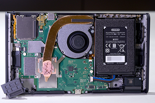 ちなみに,マザーボードとSoC,ファンやバッテリーの配置は,初代Switchとほぼ同じだ。Switchのノウハウが反映されているのだろう。