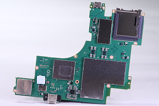 また,基板上にシールドされた部品が多いのも注目すべき点だ。先述したとおり,動作の安定性や信頼性を高めるために,電磁ノイズ対策に重点を置いていることの表れだが,「ここまでやるのか」というのが素直な感想だ。Switchよりも格段に高性能になっているだけに,信頼性のために注意する部分も増えているのだろうか。