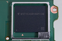 Side-Aの端には,シールドで覆われたやや大きめのチップがあった。刻印の型番で該当するものはなかったが,メーカーを示すマークから,キオクシア製のNANDフラッシュメモリチップと推測できる。1チップで記憶容量は256GBだ。