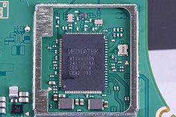 フラッシュメモリチップの近くにある大きめのチップは,Mediatek製の「MT3681AEN」という無線LANおよびBluetoothチップだ。