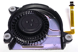 冷却用のシロッコファンは,冷却ファンや電源ユニットの製造で名高いDelta Electronics製だった。直径約35mmで,非常に細かいフィンが並んでいる。サイズは違うが,こちらもSwitchのシロッコファンと,ほぼ同じ見た目である。