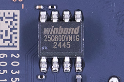 もうひとつ,Winbond Electronicsのロゴが入った小さなチップ「25Q80DVNIG」は,記憶容量1MB(8Mbit)フラッシュメモリだ。Switch2ドックのファームウェアを保存しておくものだろうが,1MB程度で足りるのにはちょっと驚いた。