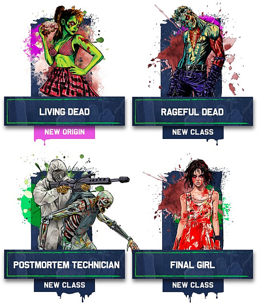 キャラクターのオリジン(出自)としては,「Postmortem Technician」や「Final Girl」などがあるが,さらにゾンビである「Living Dead」や「Rageful Dead」を選ぶことも可能だ。これに,「パンクロッカー」や「Fresh Meat」などのバックグラウンド,さらに「スリーパーエージェント」や「墓泥棒」「トライオキシン245を作ったDarrow Chemical Companyの役員」などの職業を組み合わせて自分のキャラクターを作成し,ゲームマスターが用意したシナリオに挑んでいく。