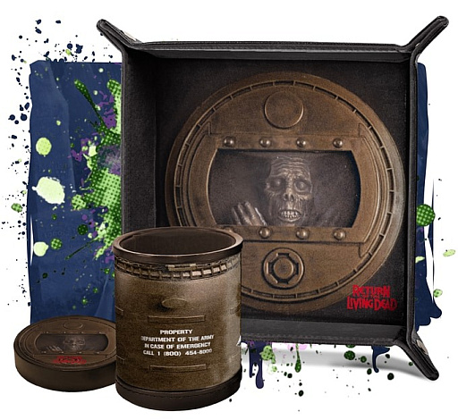 アドオンとしては,15ドル(約2200円)でタールマンのエナメルピンズやその夜光バージョン,20ドル(約2900円)で白地に血しぶきが飛んだデザインのダイスセット「Blood Splatter Dice」,25ドル(約3600円)でタールマンのぬいぐるみ,そして40ドル(約5800円)でトライオキシン245が入ったドラム缶をモチーフとしたダイスロール用の容器とダイストレー「Trioxin Barrel Dice Roller & Tray」が用意されている。