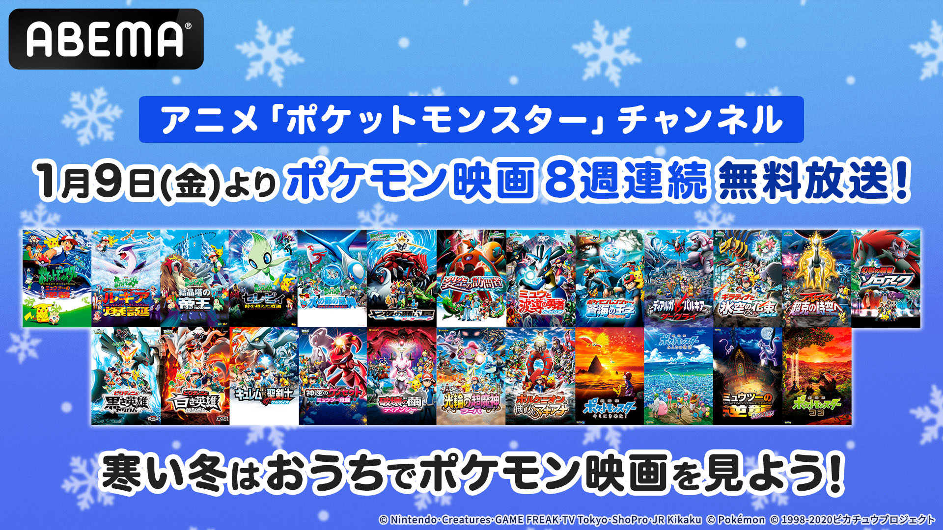 劇場版「ポケットモンスター」全24作品の無料放送が1月9日にABEMAでスタート。シリーズの歴代作品を8週連続で楽しめる