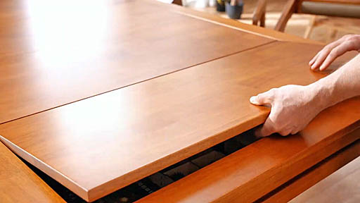 「Kingswood Game Table」はラバーウッド製のテーブルで,天板が脱着式になっている。天板をはめておけば通常のテーブルとして使えるし,外せば,一段下がったところにゲームのためのスペースが設けられている。