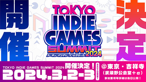 「TOKYO INDIE GAMES SUMMIT 2024」,来年3月2日,3日に東京・武蔵野公会堂で開催決定。インディーゲームの開発者やファンが集う場に