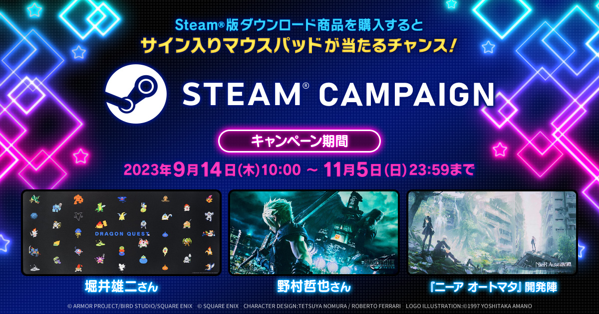 堀井雄二氏のサイン入りマウスパッドなどが抽選でもらえる「Steamキャンペーン」,スクウェア・エニックスのe-STOREで実施中