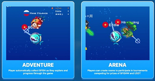ゲームモードは,AI制御の魚と戦うPvEと,ほかのプレイヤーと対戦するPvPの2種類があり,PvPトーナメントでは$FISHWトークンやUSDTを報酬として獲得できます。