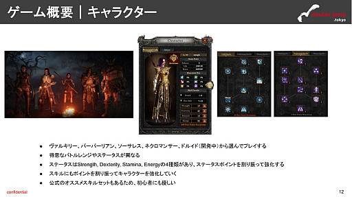 SERAPHのゲーム性はディアブロライクなアクションRPGで,ダンジョンやクエストを攻略しながらキャラクターを強化し,さらに難度の高いダンジョンに挑戦していきます。自キャラは,現時点ではヴァルキリー,バーバリアン,ソーサレス,ネクロマンサーから1つを選んでプレイすることができます(ドルイドも開発中)。