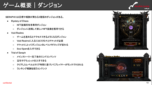 なのでこの連載では,毎月のブロックチェーンゲームのユーザー数や取引高ランキングの動向,そのとき話題になっているブロックチェーンタイトルの様々な分析データなどをdouble jump.tokyoが作成し,まとめて皆さんに紹介します。前回は「MapleStory N」(PC)を深掘りしましたが,今回の分析ターゲットは「SERAPH:In the Darkness」です。