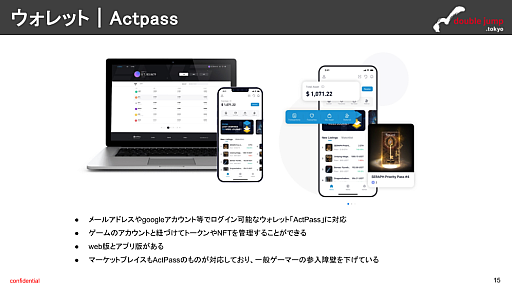 SERAPHでは,Actpassというウォレットがアカウント作成時に自動的に作られます。Actpassウォレットに入金して,マーケットプレイスで取引を行ったり,NFTやトークンの管理を行ったりすることができます。
