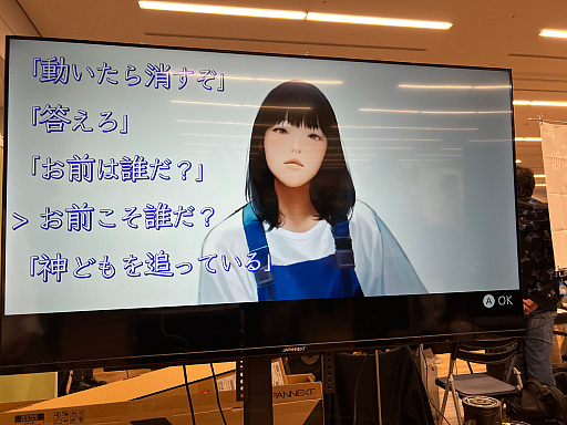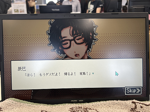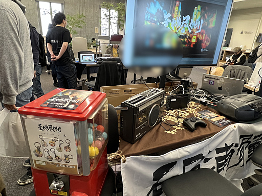 ![]() 20年前の上野界隈を舞台にした一次元RPG「至れり尽くせリ」(PC / Switch / iOS / Android)は,4月26日に発売。イベント当日は試遊ができたほか,キーホルダーをカプセルトイの筐体で販売していた |