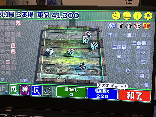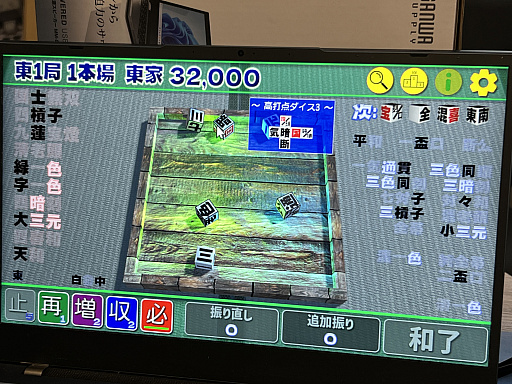 役名は画面に表示されており,また盤面に出た文字は強調表示されるので,麻雀の役を覚えていない人でも楽しく(?)遊べるはず。