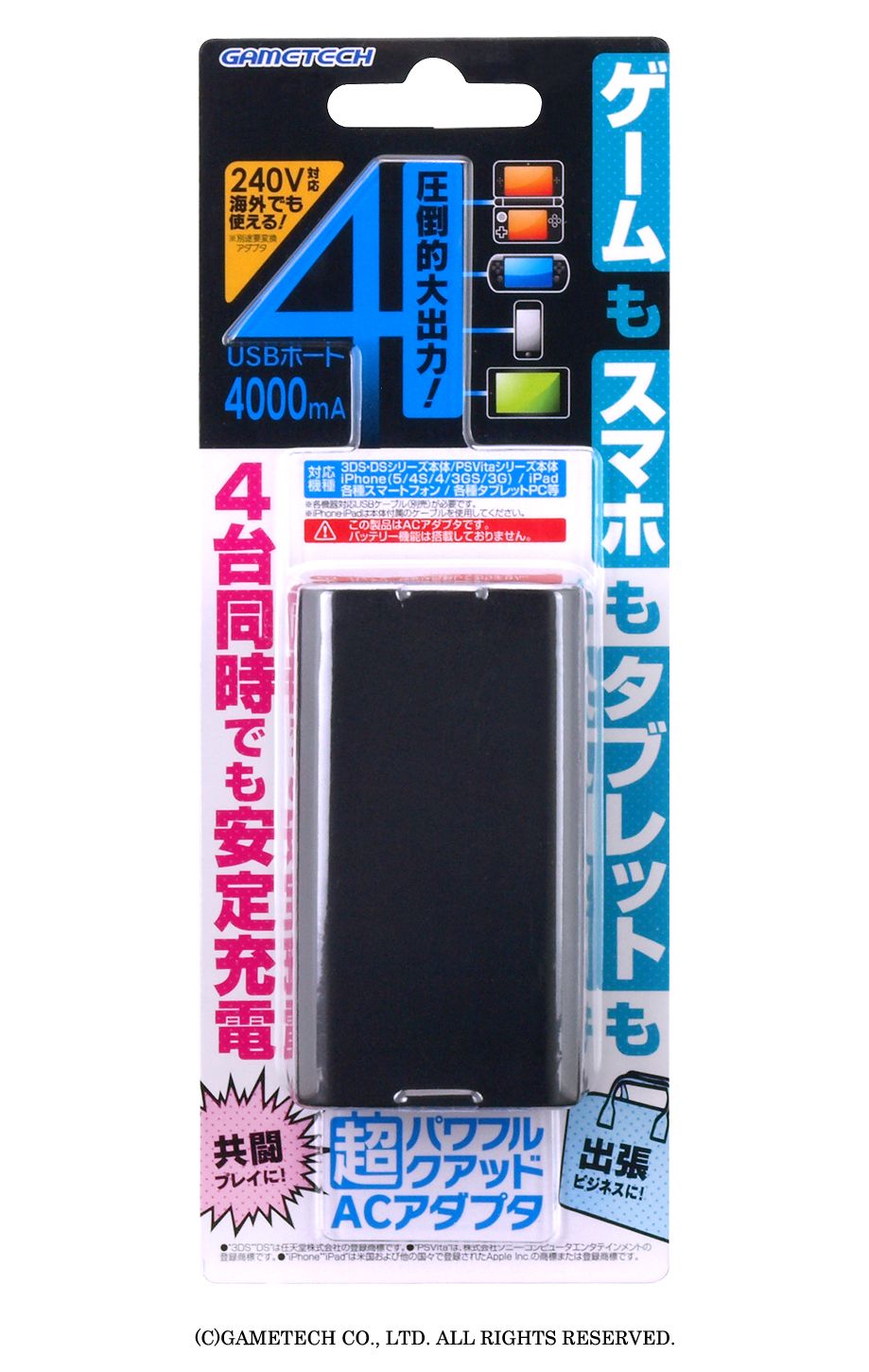 長時間の狩りに。最大4000mA対応で4台同時USB充電できるACアダプター