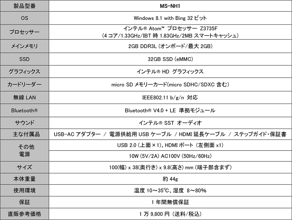 極小サイズでフルWindowsが動いて税込2万円。スティック型PC「m-Stick」が12月5日に発売予定