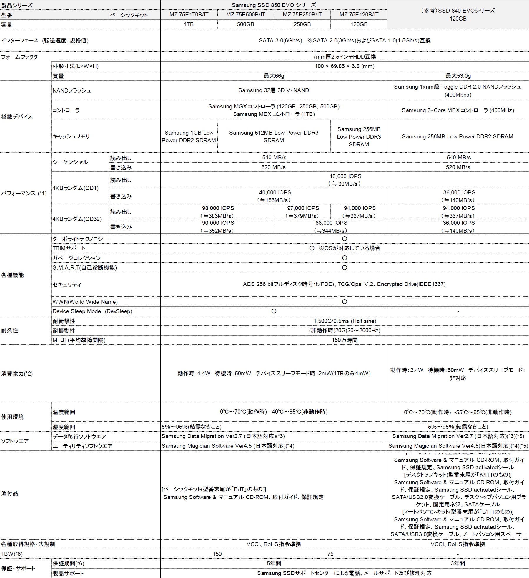 3D V-NAND技術採用のSamsung製SSD「SSD 850 EVO」計4製品は12月中旬に発売。250GBモデルで1万9000円前後に