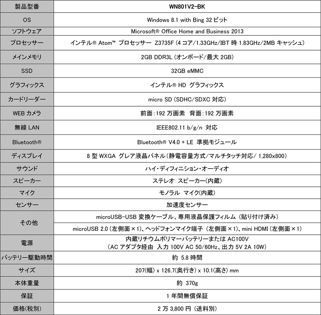 約2万6000円のWindows 8.1搭載タブレットがマウスコンピューターから登場