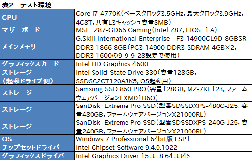 表2に仕様をまとめたデスクトップPCでいくつかのテストを行い性能を確認してみた。