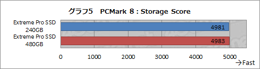 PCMark 8の総合スコアであるStorage Scoreは,ハイエンドSSDとしては標準的な結果だが,平均転送速度はSamsung Electronics製SSDやIntelのハイエンドSSDに1割ほど譲る結果となった
