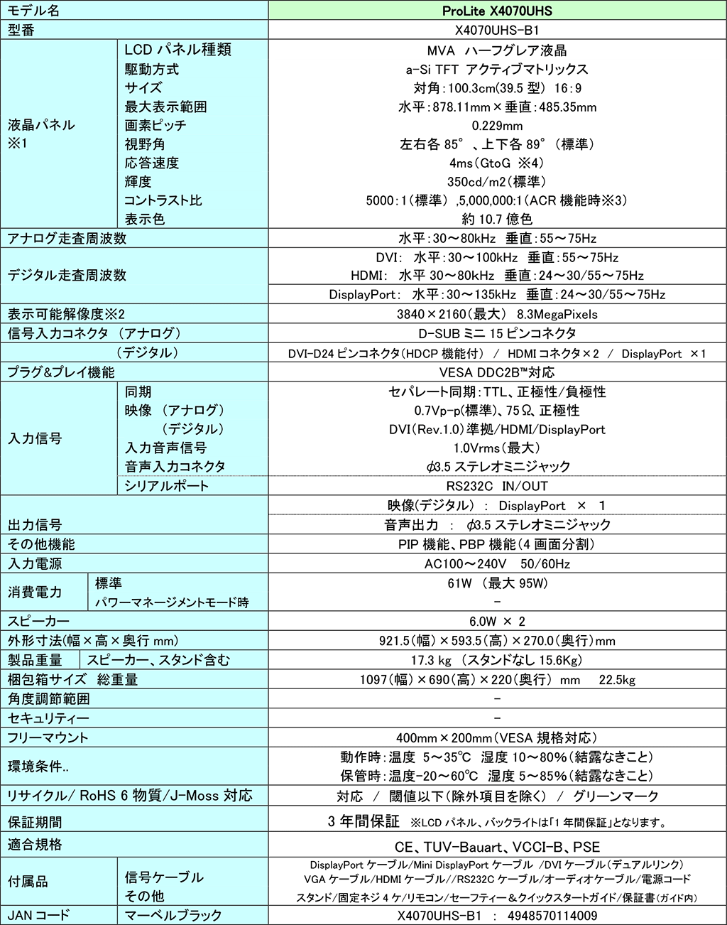 40インチで4K解像度対応のMVA液晶ディスプレイがiiyamaブランドから発売に。直販価格は約16万円