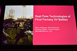 さて,今回のReal-Time Live!には,珍しく日本からスクウェア・エニックスの「FINAL FANTASY XV」(PS4 / Xbox One,以下 FFXV)開発チームが参加して,「Real-Time Technologies of FINAL FANTASY XV Battles」(FINAL FANTASY XVの戦闘におけるリアルタイム技術)というセッションを行った。