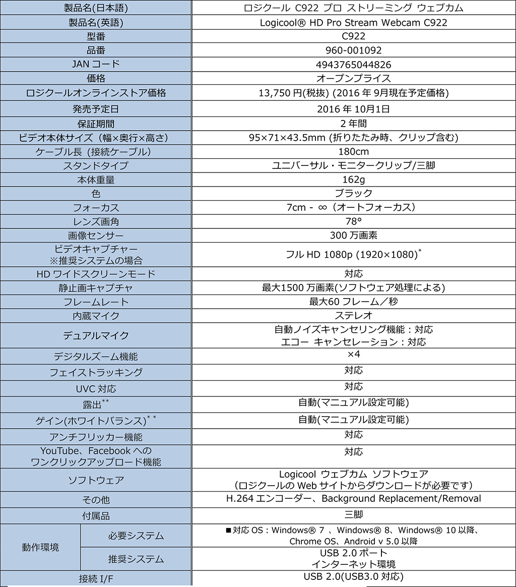 背景を消し,ゲーム映像には人物だけ重ねて録画できるWebカメラ「C922 Pro Stream Webcam」がロジクールから登場