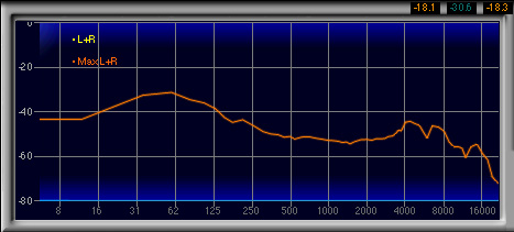 8kHz以上の帯域はそれ以下の帯域よりやや下がっているが,直前にあるプレゼンスの山のためか,高域が失われている印象はほとんどない。一方,超高域は18kHzくらいまで十分に存在し,その後も弱いながらもまだある。何というか,低域と高域のバランスもよく,「普通にいい音」だったりする。