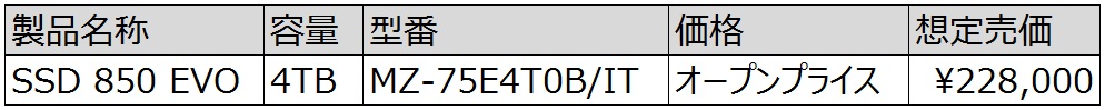 約23万円。「SSD 850 EVO」の容量4TBモデルが12月22日発売