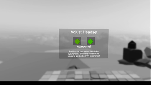 といっても,キャリブレーション作業自体は簡単で,VR空間に表示される点に視線を合わせていくだけ。時間にして1分もかからないものだ。