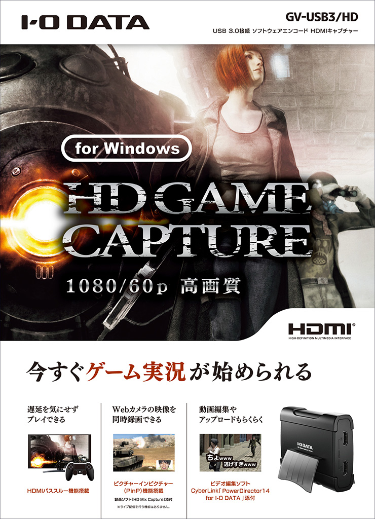 アイ・オー,USB 3.0接続で1080/60p録画対応のゲーマー向けキャプチャデバイス「GV-USB3/HD」を9月末に発売