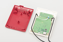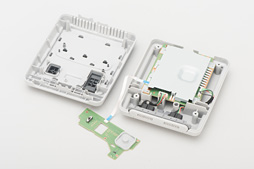 ちなみにこちらはミニファミコンの分解写真。細かな配置の違いはあれど,「金属板付きメイン基板と,電源/リセットスイッチ用サブ基板の組み合わせ」という基本仕様はそっくりだ