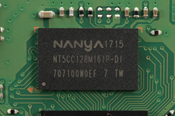 入手した個体では,容量2GbitのDDR3メモリチップとしてNanya Technology製の「NT5CC128M16IP-DI」を搭載していた。ごくごく普通のDDR3だ |