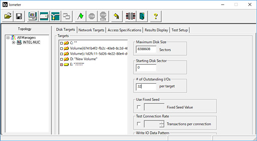 続いてはIometerの結果を見ていこう。Iometerは設定したアクセスパターンを使ってストレージに高い負荷をかけることによって性能を測るベンチマークで,ストレージのI/O性能を確認することができる。