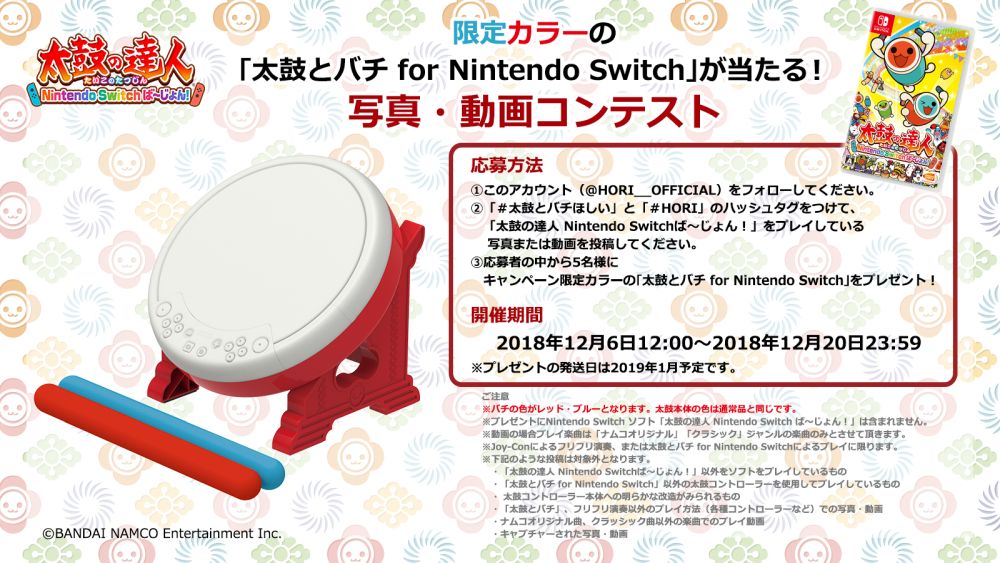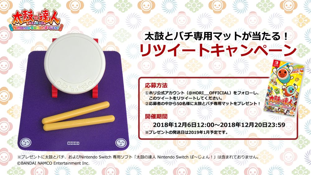 HORI,Switch版「太鼓の達人」専用コントローラ限定モデルや関連グッズがもらえるTwitterキャンペーンを開始