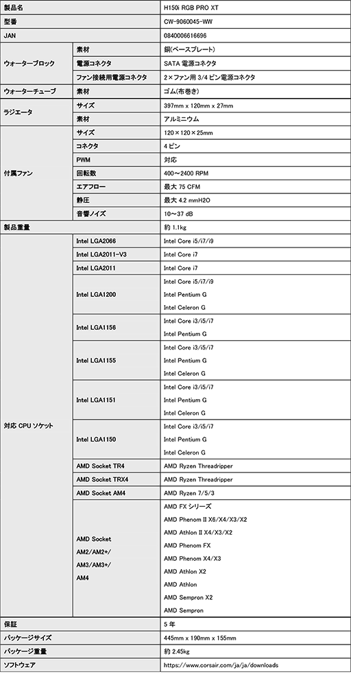 ◆iCUE H150i RGB PRO XTスペック