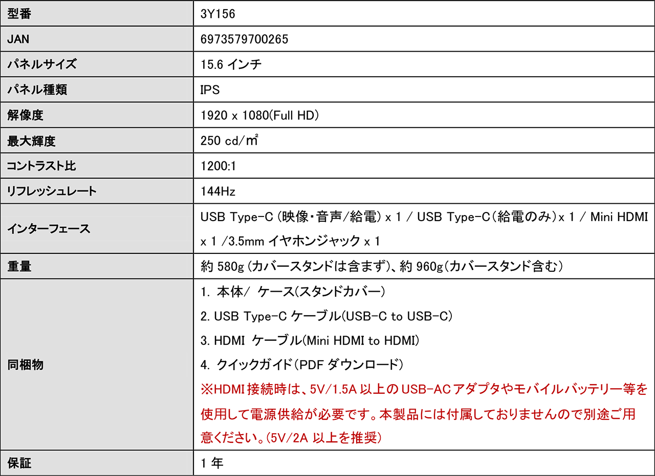 15.6型で144Hz表示&FreeSync対応のゲーマー向けディスプレイが登場