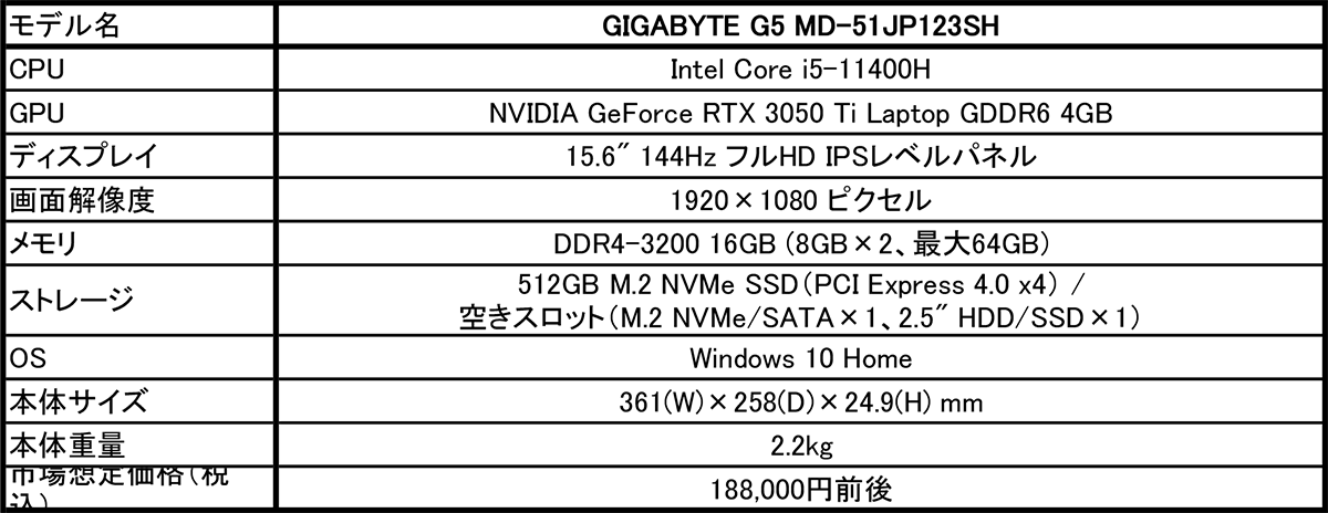 GIGABYTE,RTX 3050 Ti&i5-11400H搭載の15.6型ノートPCを発売