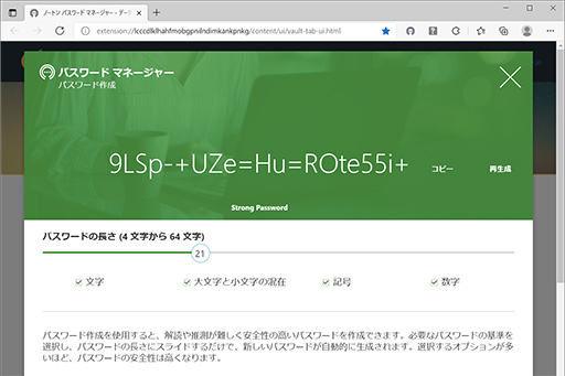 ノートンパスワードマネージャーを使えば,Webサイトやサービスごとに複雑で異なるパスワードを容易に使い分けられる。そのために,ノートンパスワードマネージャーは,パスワード生成機能も備えているのだ。