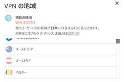 ゲームのために使うときは,VPNサーバーの地域設定が重要だろう。利用したいサービスが行われているリージョン内のVPNサーバーが使えないと意味がないからだ。セキュアVPNには,もちろんその設定も用意されている。