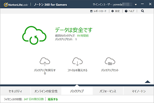 ノートン 360 for Gamersには,バックアップに使える記憶容量25GB分のクラウドストレージが付属している。クラウド側にバックアップするファイルは任意に選べるので,大切なデータをクラウドにバックアップしておくことが可能だ(※PC全体のバックアップには使えない)。