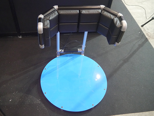プレイヤーの身体にセンサーやハーネスを接続する必要がなく,本体のみの最小構成だと重量はわずか約4.2kgで,机に設置することが可能だ。専用スタンドにセットしても,高さ約50cm,スタンドの直径は約60〜70cmで,本体含む総重量は約13.7kgとコンパクトだ。