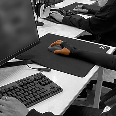 マウスでのゲームプレイには、手首・腕・肘のそれぞれを軸にしてプレイするゲームスタイルへ大別されます。エイムパッドはゲームそれぞれのプレイスタイルをカバーするXLサイズとなっています。肘から手のひらまですっぽりマウスパッド面へ収まる為、ローセンシなどマウスを大きく動かすプレイスタイルでも滑走面が足りなくなることなく安心してご利用いただけます。また、製品の厚みも3mmと薄い中に程よいクッション性を与えることで、腕や手首でのプレイでもストレスを感じにくくなっています。