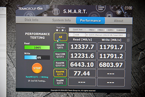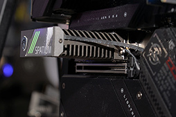 前者はヒートパイプと放熱板を大型化したもので,後者は小型ファンを内蔵することで放熱を行う。デモ機では,2枚のM.2 SSDによるRAID 0の構成で,最大20000MB/sの転送速度を叩き出していた。ただ,これはあくまでも技術デモであり,RAID 0構成での販売予定はないという。