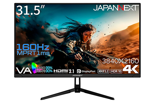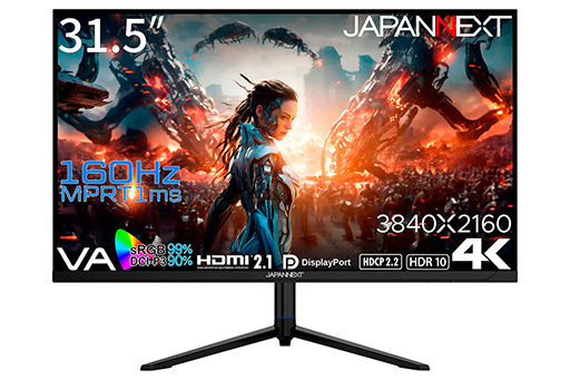 4K160Hz表示対応の31.5型VA液晶ゲーマー向けディスプレイがJAPANNEXTから。4K144HzのIPS液晶モデルも同時発売