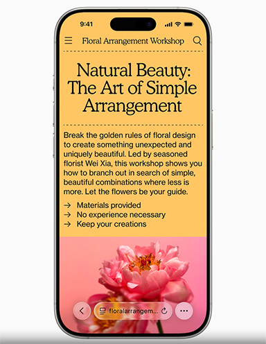 Apple Intelligenceを活用した画像検索も強化しており,撮影した写真だけでなく,画面に表示している画像を指定して,詳細を検索できる。さらに画面に表示しているイベントポスターの情報を読み取ってカレンダーに予定を入力することも可能だ。