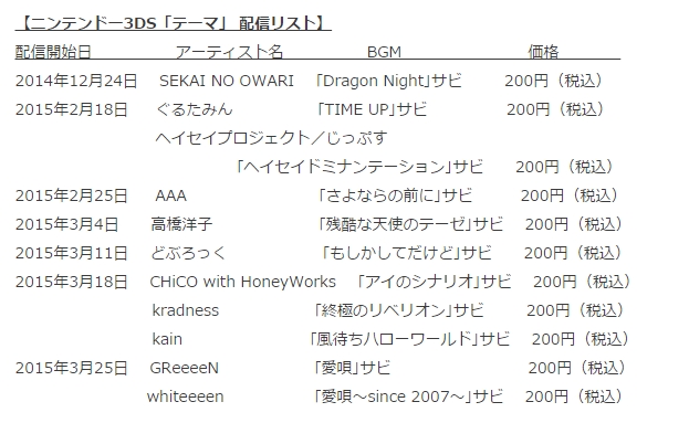 レコチョク,ニンテンドー3DS向け「テーマ」を順次配信