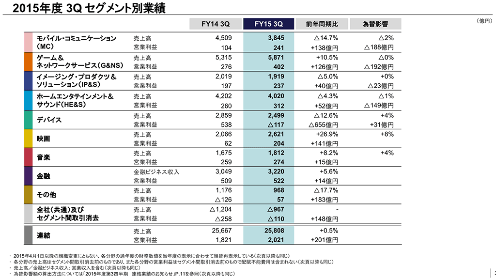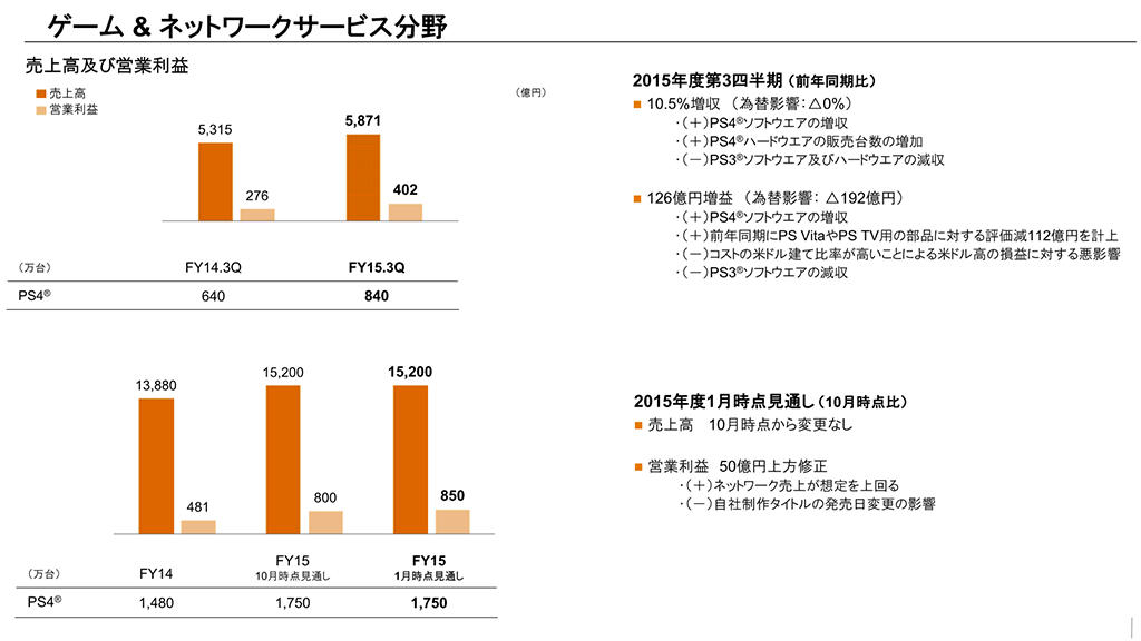 PS4は昨年を上回る絶好調で840万台を販売。ソニー,2015年度第3四半期の連結決算を発表