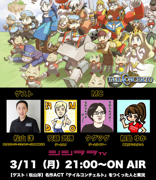 3月11日の「つくった人がゲーム実況」で「テイルコンチェルト」をピックアップ。松山 洋氏がゲストとして登場