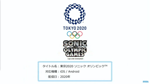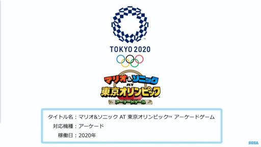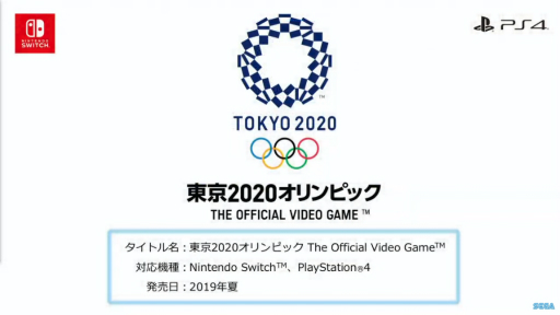 PlayStation4/ Nintendo Switch用ソフト『東京2020オリンピック The Official Video Game』を、 日本・アジアにおいて2019年夏に発売し(その他地域は2020年)、 以降2019年冬には任天堂のマリオとセガのソニックが共演するNintendo Switch用ソフト『マリオ&ソニック AT 東京オリンピック』、 2020年にはアーケード用ゲーム『マリオ&ソニック AT 東京オリンピック アーケードゲーム』とiOS/Android用アプリ『東京2020 ソニックオリンピック』を順次発売してまいります。